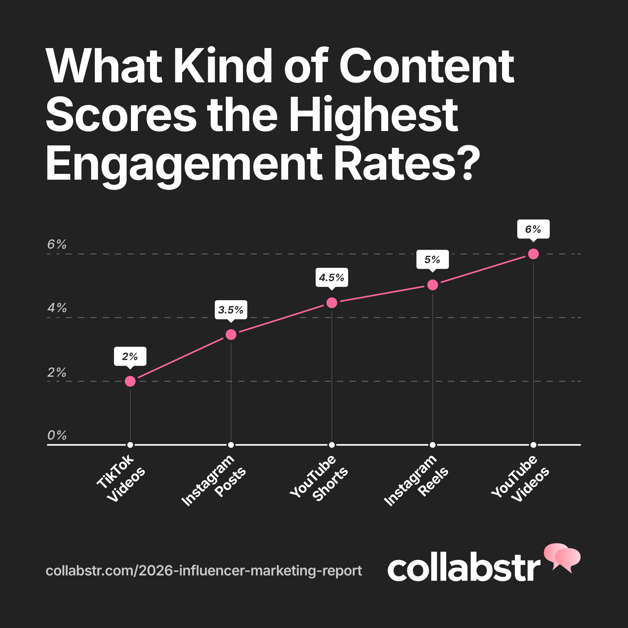 Instagram Reels and YouTube Shorts still perform well because they’re fast, fun, and easy to interact with, but the engagement rate step-down suggests that quick consumption doesn’t always translate into meaningful action.