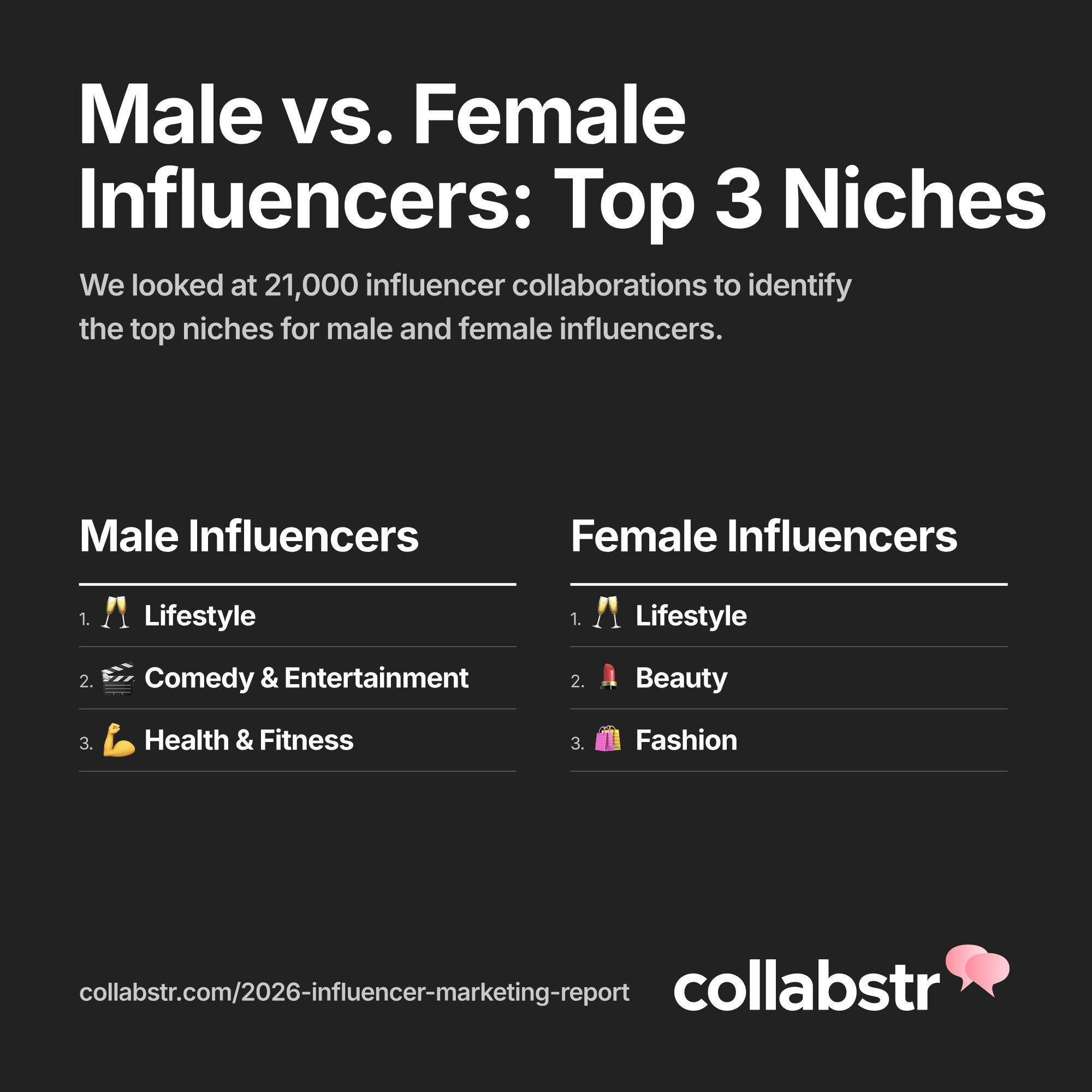 We looked at 21,000 influencer collaborations to identify the top niches for male and female influencers.