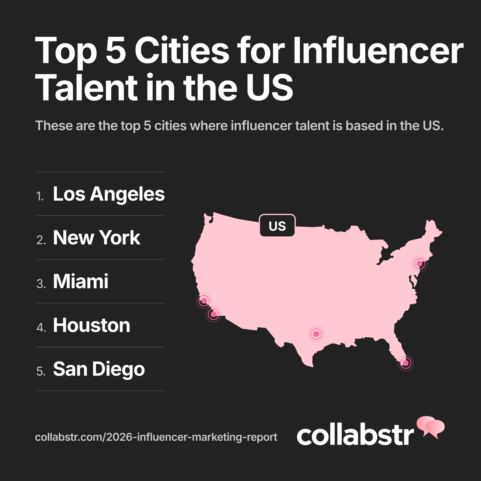 Los Angeles and New York remain the core of the creator economy, driven by entertainment, fashion, and media, and hold on to their top spots from last year. Changes year over year include the rise of Houston and San Diego which edged out Atlanta and Dallas as major creator hubs in the US.