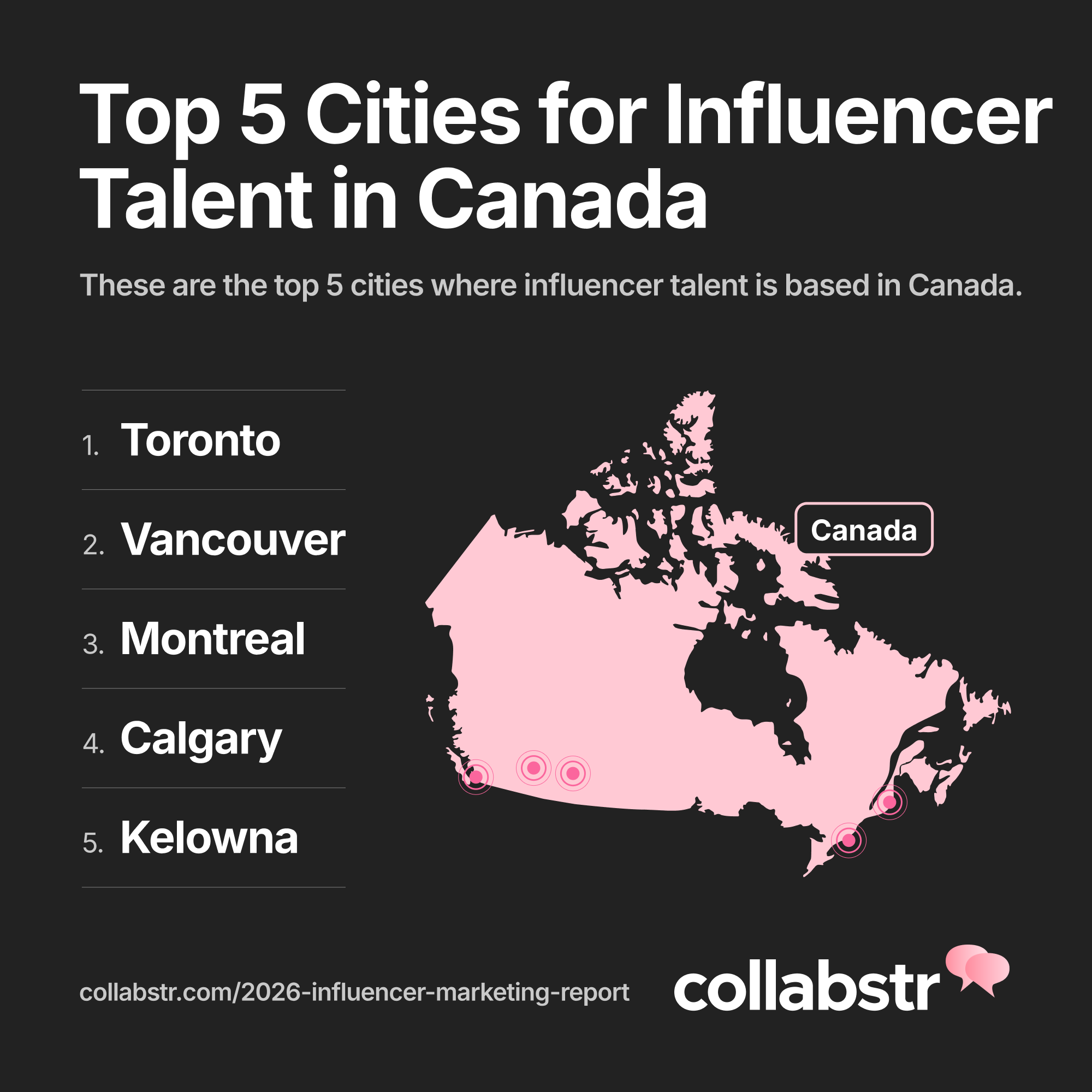 Little changed year over year in the top five Canadian cities ranking, suggesting relative stability in the country’s influencer marketing space. Ottawa did drop out of the top five, replaced by Kelowna.