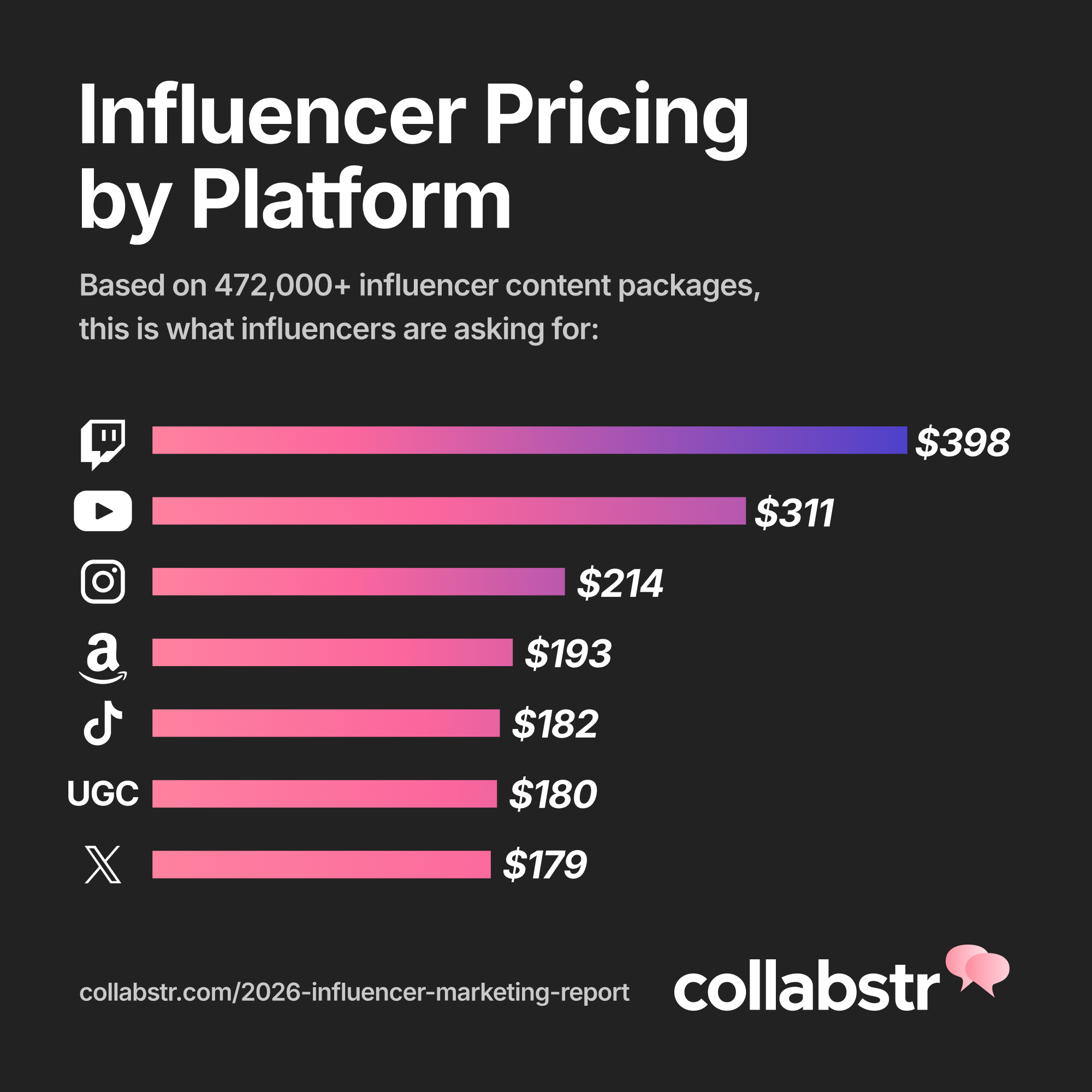 We analyzed 472,000+ packages and 21,000 collaborations on the Collabstr platform to learn more about how much influencers charge for their services and which platforms commanded the highest price tags from brands.